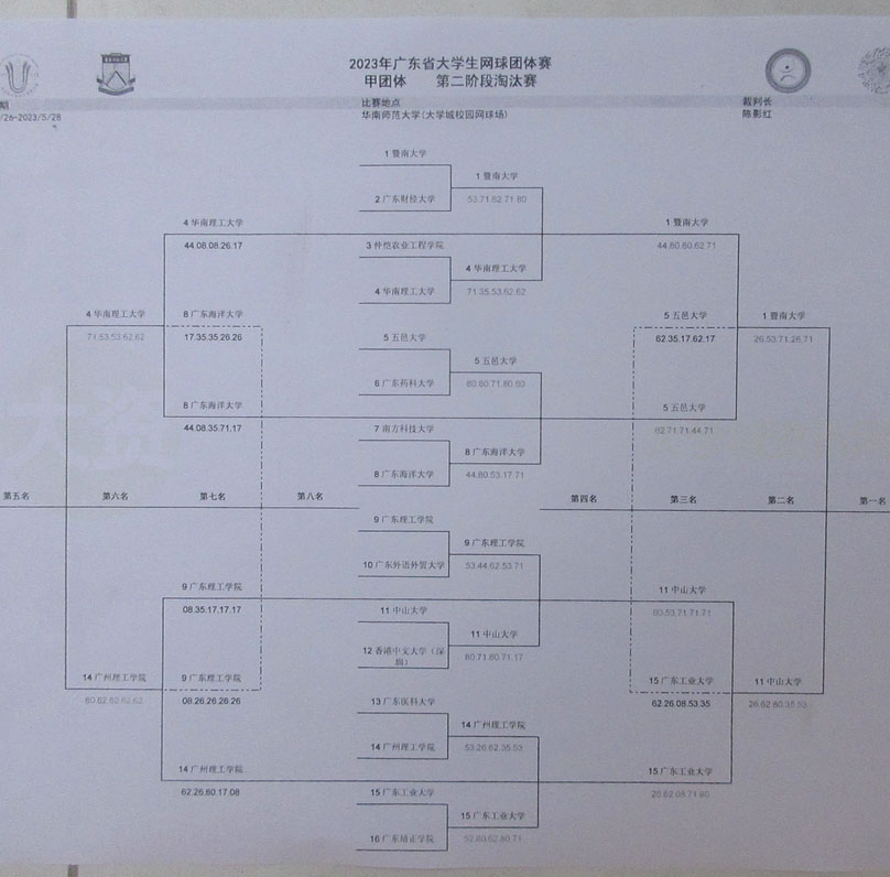 第二届广东省大学生网球高校团体赛今天上午结束所有赛事争夺 甲组-普通本科直招组,总共有16所高校代表队参赛,最终暨大和中大晋级到最后决赛,分享冠亚军 乙A乙B和丙组都参赛队伍数量偏少 就是甲组方面,也有诸如南医大、华农、广中医、广大、广州医科、广师大等省内名校没有参赛