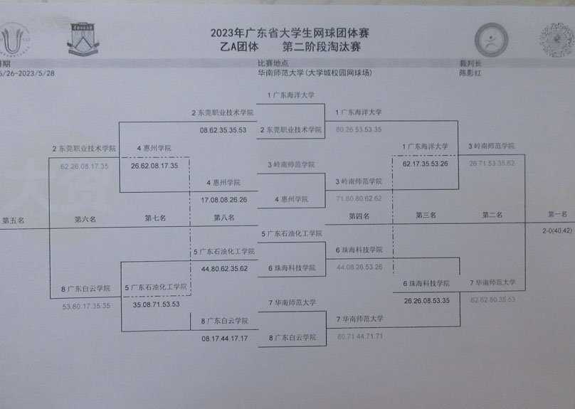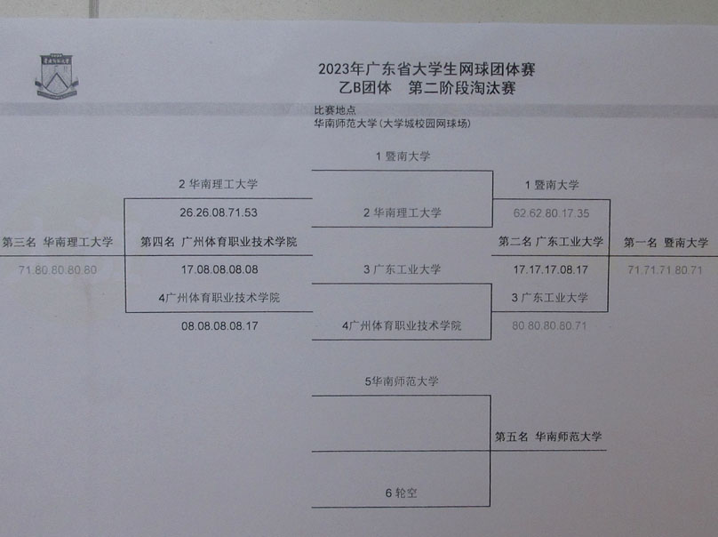 | 第二届广东省大学生网球高校团体赛今天上午结束所有赛事争夺 甲组16支参赛队里 中大暨大晋级决赛分享冠亚军 | ||||||