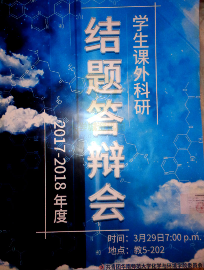 化环学院2017-2018年度学生课外科研结题答辩会 3月29日晚7点 教5-202