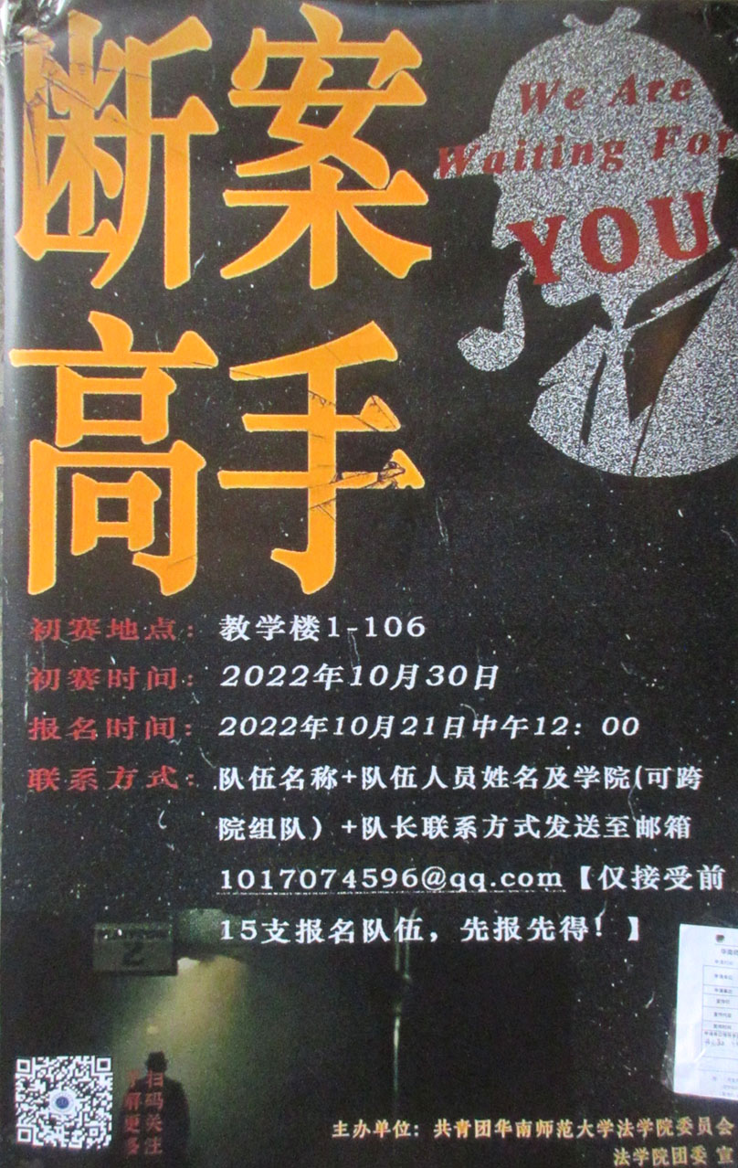 法学院-断案高手大赛 初赛2022.10.30教1-106 报名截止2022.10.21中午
