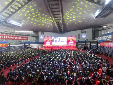 华工 也将进行毕业典礼和学位授予了 在体育馆 看布置 规格还挺高且隆重的