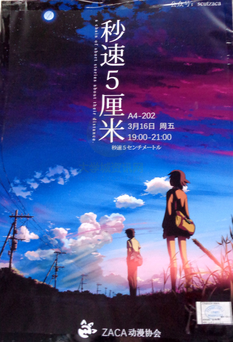 | ZACA动漫协会|秒速5厘米 A4-202 3月16日周五 19:00-21:00 | ||||||