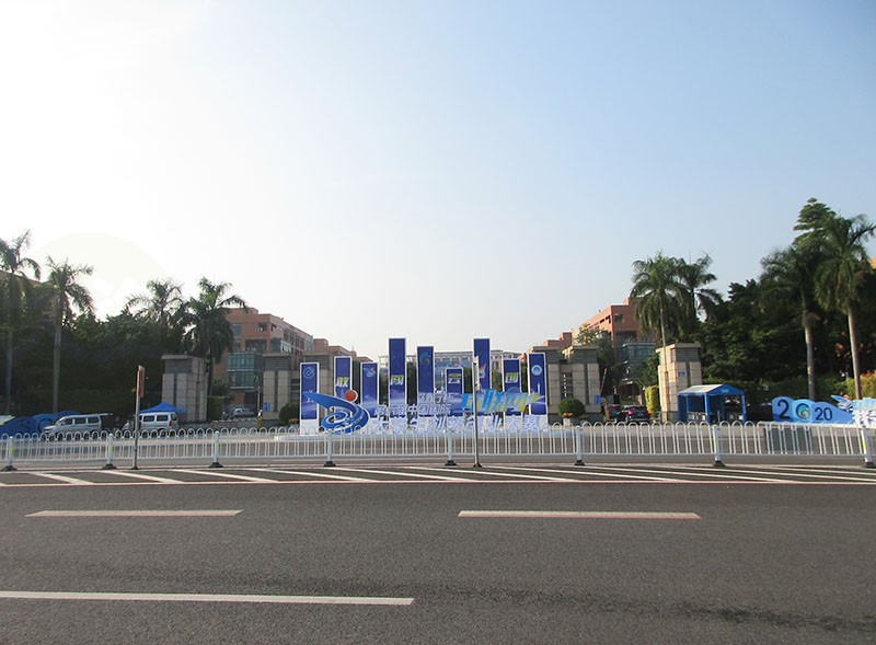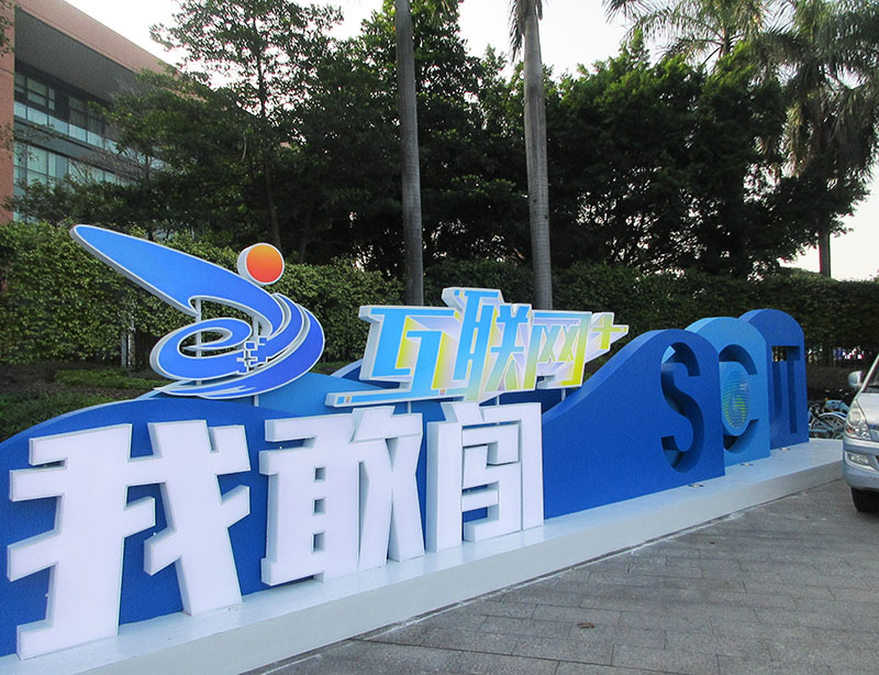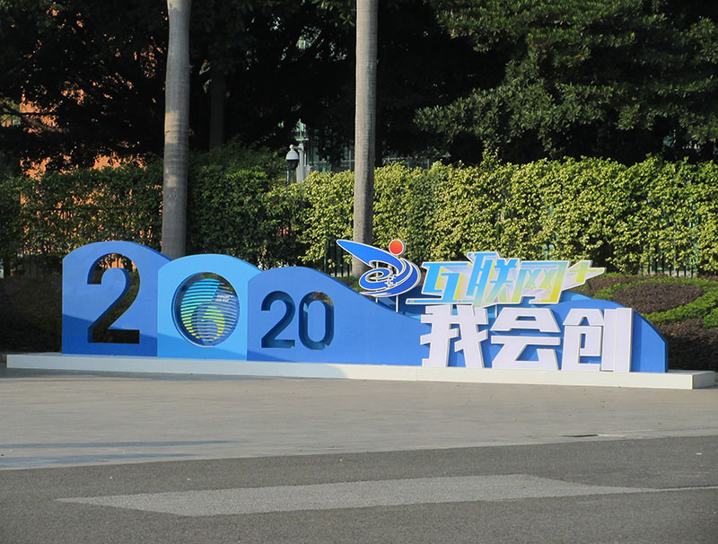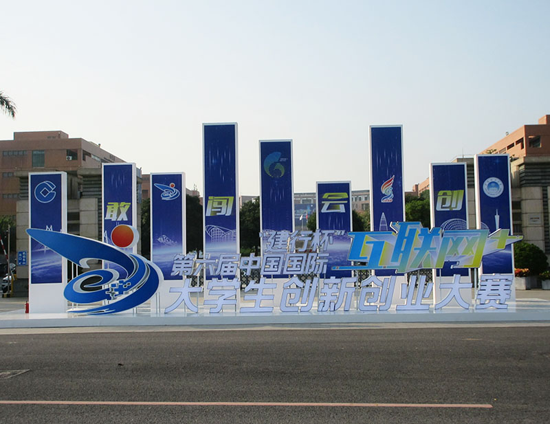 经过几天时间的装整,华工正门外,第六届互联网+创业大赛,的主题标识情景视象,已经完全就位,看上去还是非常有门面效果的,非常显眼和引人注目