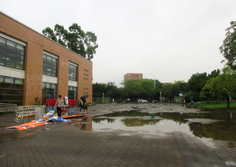 华工-非文-雨后-早已收摊-估计是没玩嗨、没玩起来了,非洲兄弟表示很不尽兴啊,奈何这样的时节,老天是说下雨就下雨啊,三四五月,仿佛大雨常态,学校当初设计的时候可以考虑建一个不那么露天的有棚的场地,供万一遇雨,可以转移其中