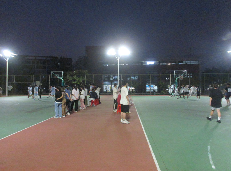 生科学院迎新杯篮球赛两场小组赛正在生活区二饭篮球场进行