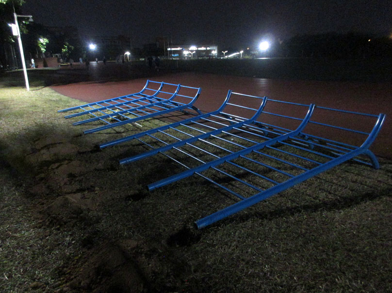 生活区田径场看到靠西南侧 好像在准备新装立一个健身器材,这种视样的是叫什么?垂直排单杆?