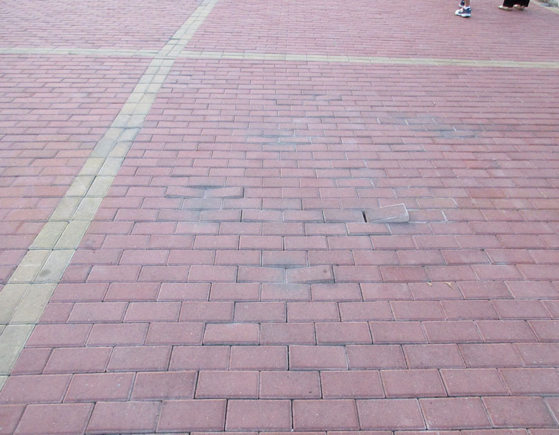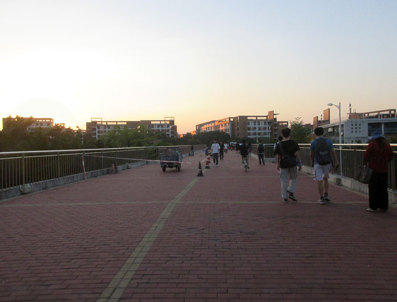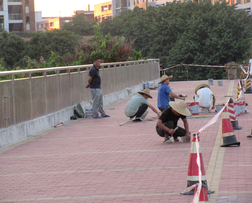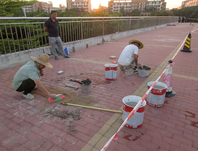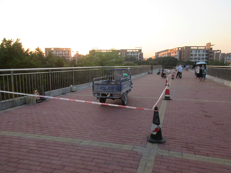 华工中环北天桥,好像正在对一些局部有松动的地砖进行加固再施工 看来是走的人太多了