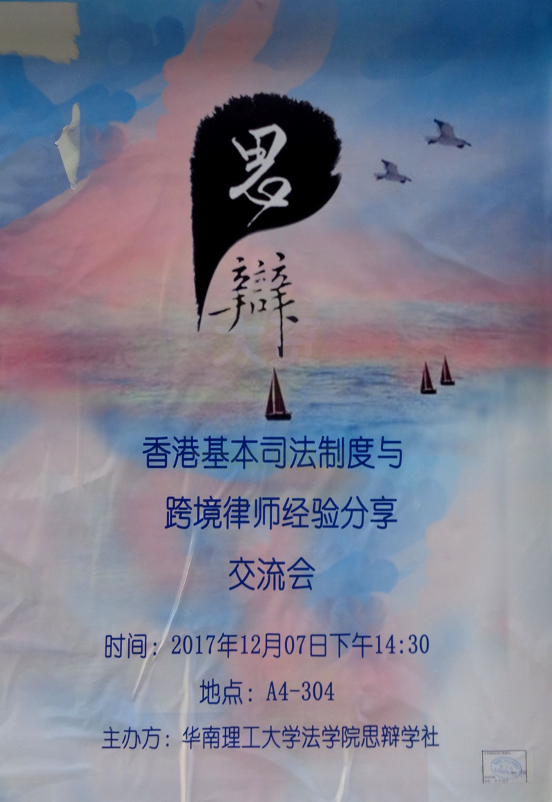 | 法学院思辩学社 香港基本司法制度与跨境律师经验分享交流会 12.07下午14:30 A4-304 | ||||||