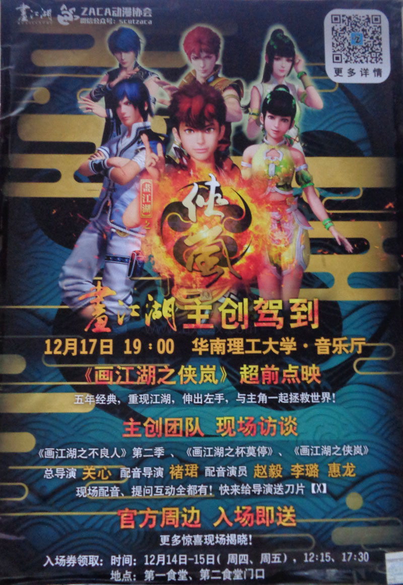 | ZACA动漫协会《画江湖之侠岚》超前点映 12月17日19:00音乐厅 画江湖主创驾到 | ||||||