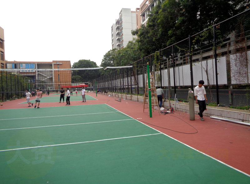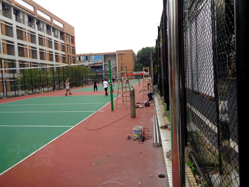 不过通知告示就贴在排球场入口门网外,但还是有学生进入场内进行排球活动,旁边加装雨棚施工也同时正在进行