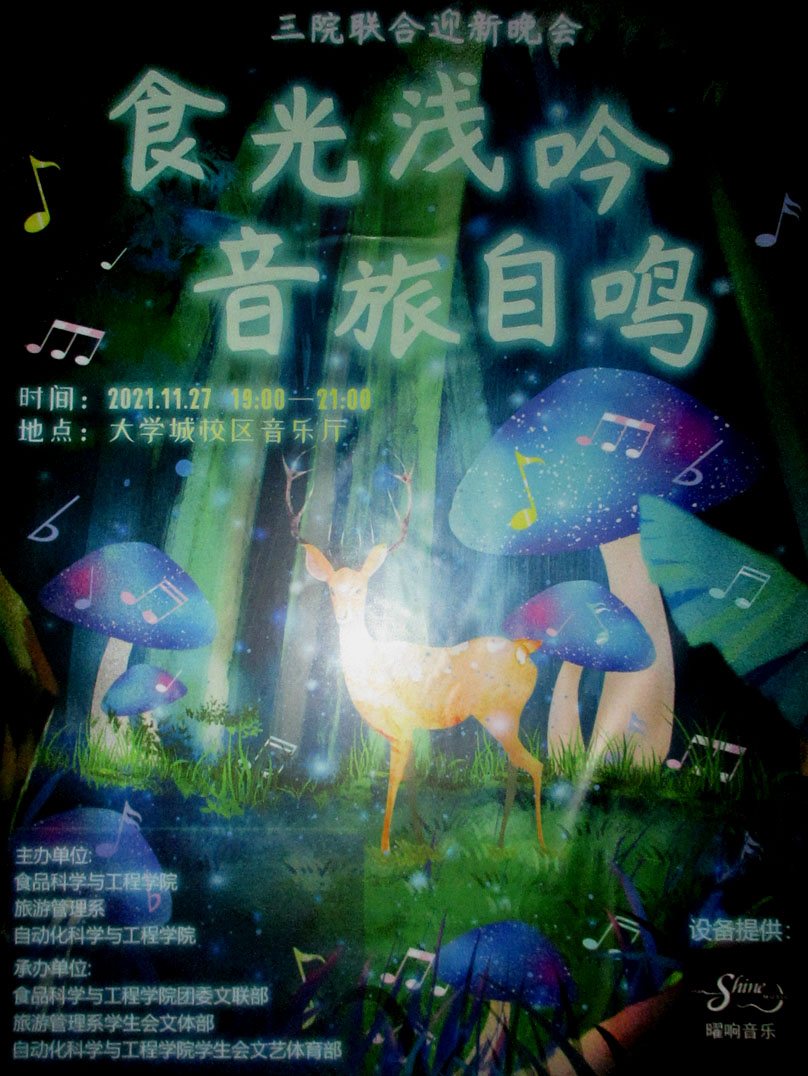 食品 旅管 自动化三院联合迎新晚会 2021.11.27晚19点 教学区音乐厅