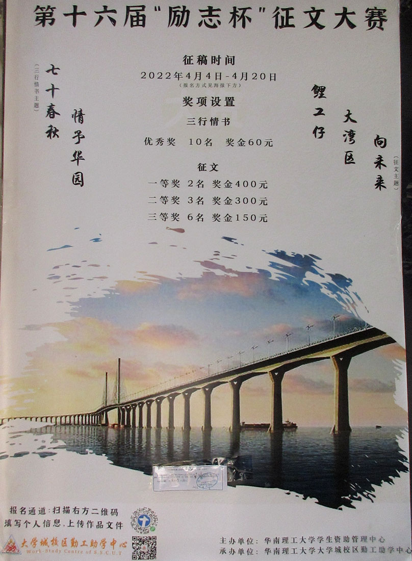 华工 第十六届“励志杯”征文大赛&三行情书 时间2022.4.4-4.20