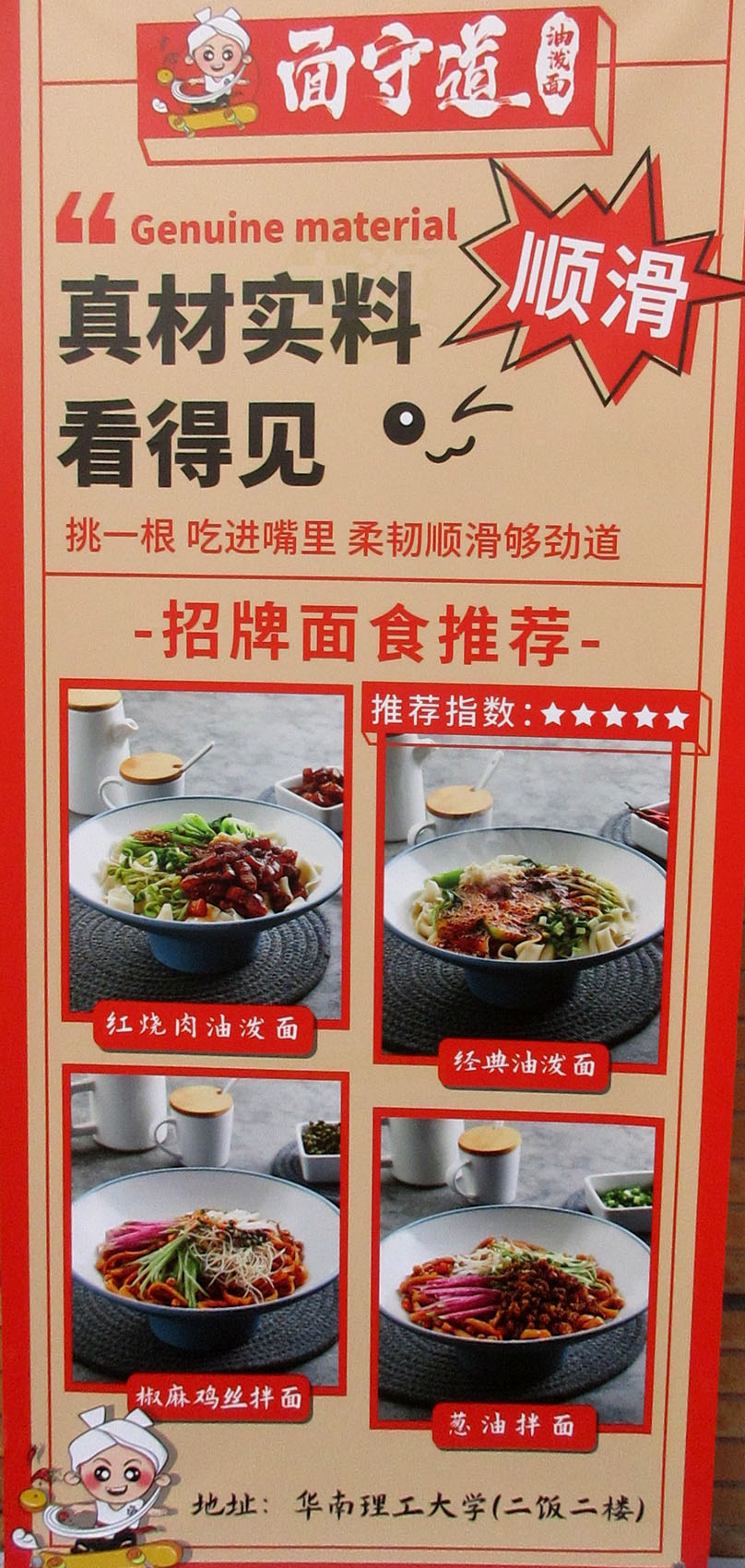 华工 二饭二楼 面守道 招牌面食推荐  红烧肉油泼面 经典油泼面 椒麻鸡丝拌面 葱油拌面