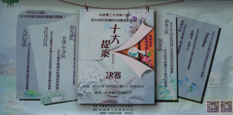 | 华工第六届“十大提案”决赛 12月9日(周六) 18点30分 音乐厅 | ||||||