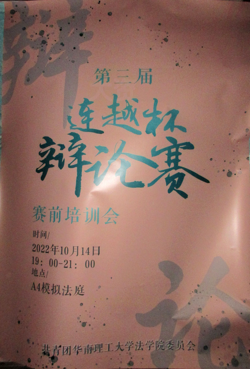 | 法学院·第三届连越杯辩论赛 赛前培训会2022.10.14晚19点-21点 A4模拟法庭 | ||||||