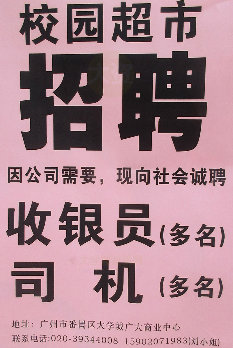 广大商业中心 超市招聘收银员和司机多名 联系15902071983刘小姐