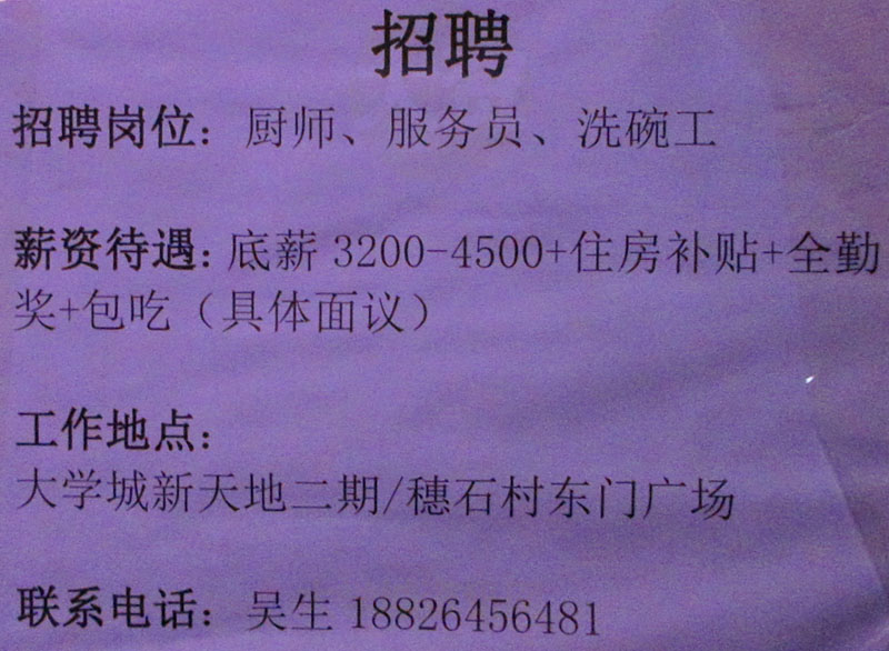 贝岗新天地二期/穗石东门广场餐饮店招聘厨师、服务员、洗碗工 底薪3200-4500